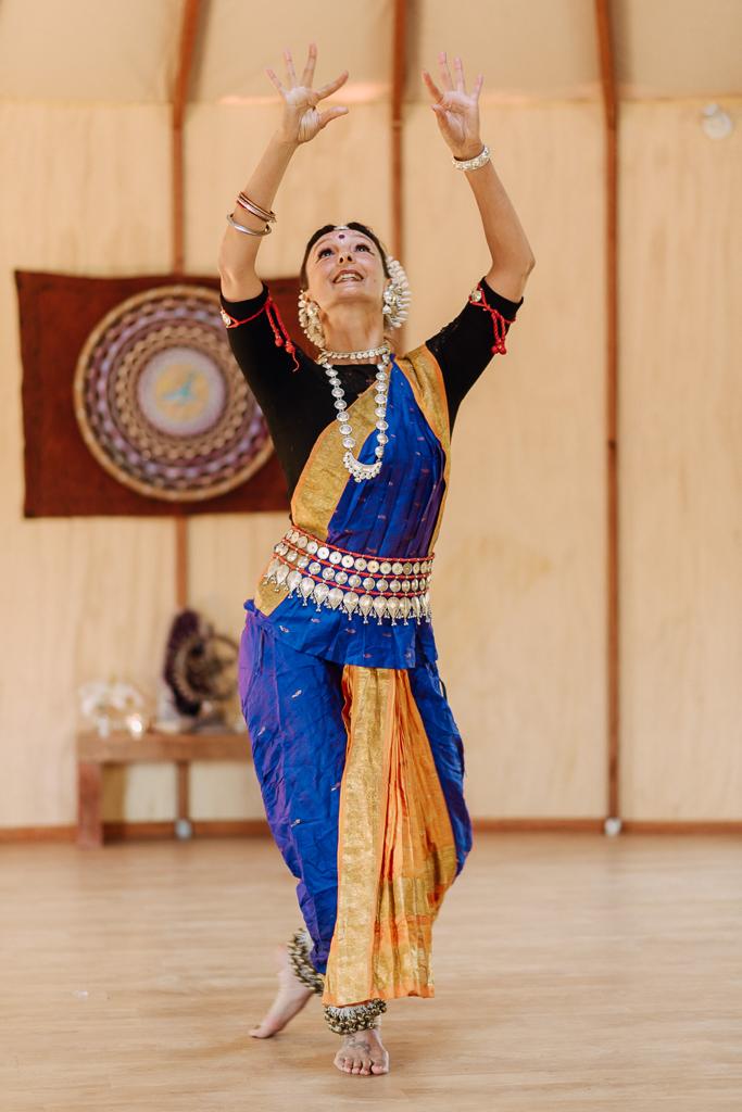 Se caracteriza por: ✨ Movimientos fluidos y femeninos ✨ Gestos sagrados (mudras) ✨ Esculturas vivientes a través del cuerpo ✨ Ritmo y percusión con los pies.